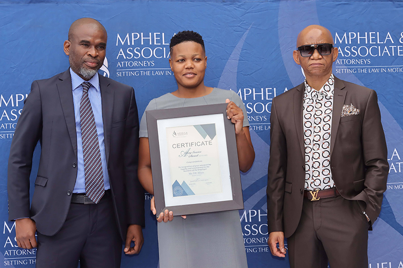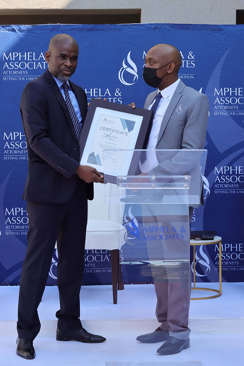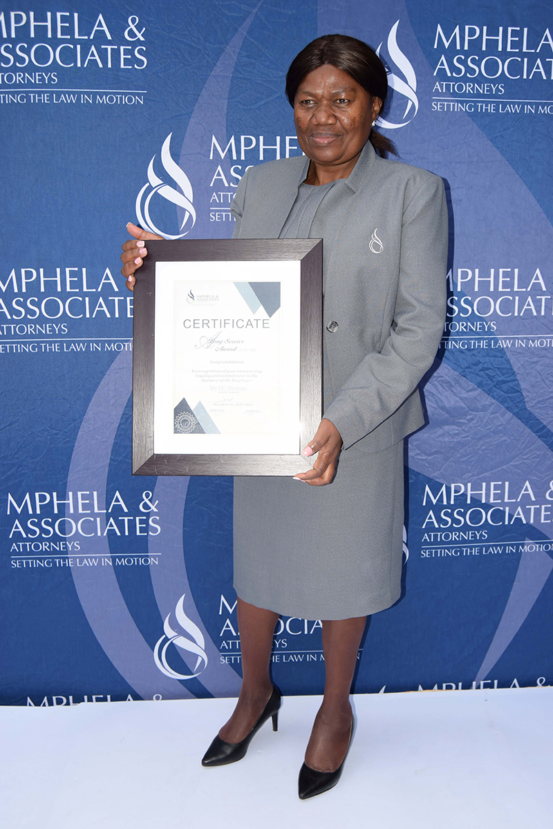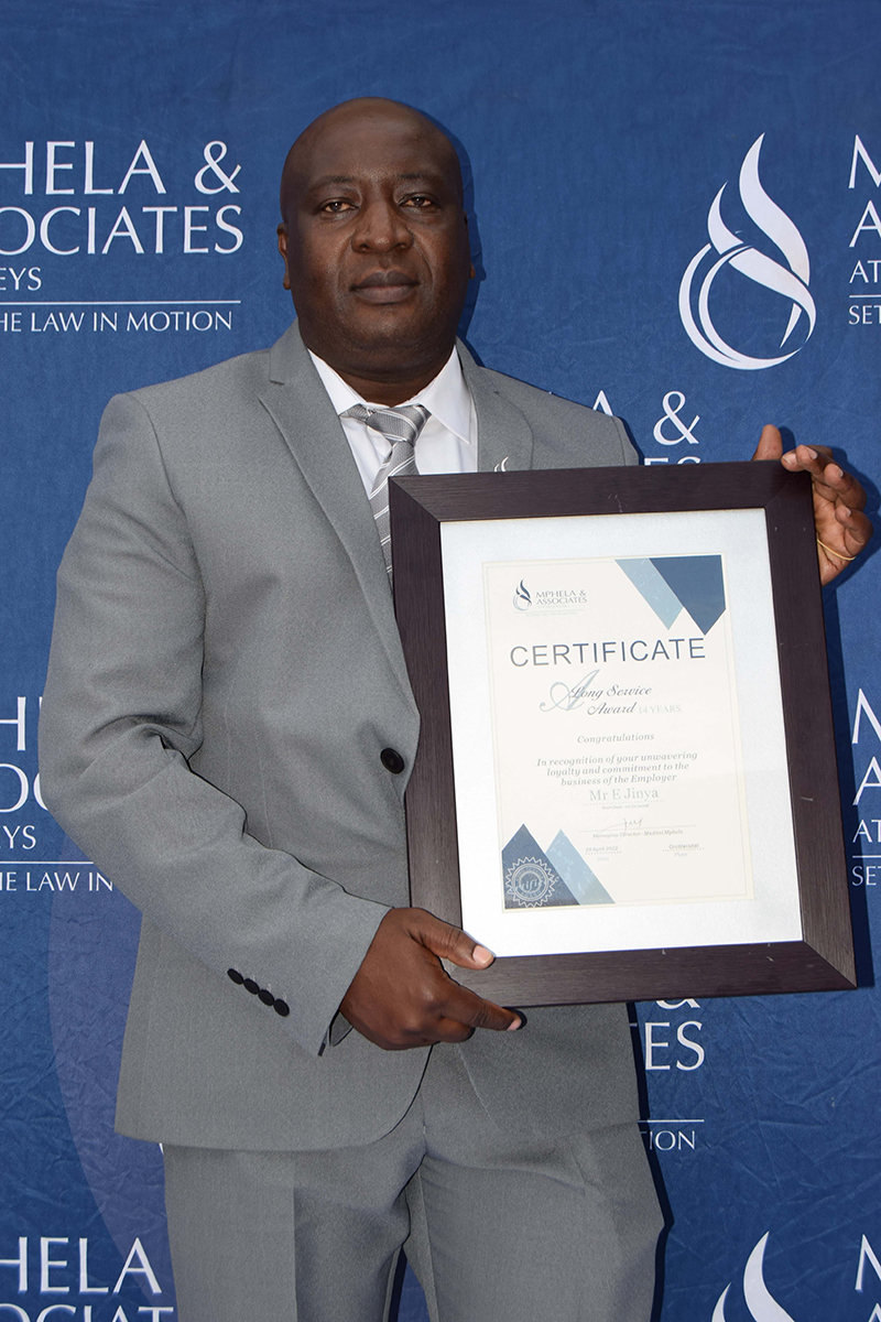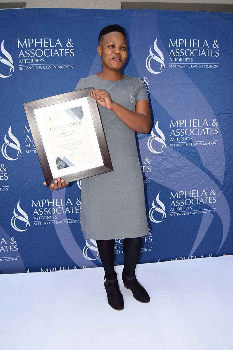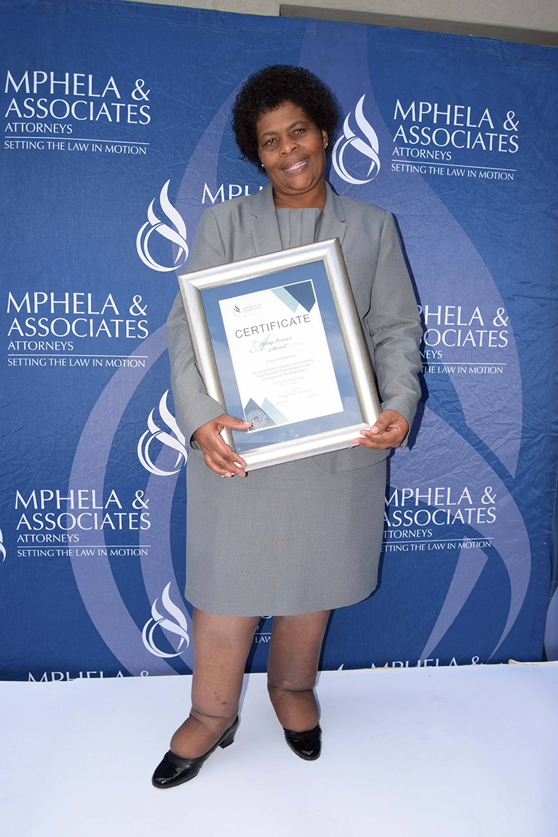 It is the dedication and commitment of our employees that drive the success behind Mphela and Associates Attorneys. On the 20th May 2022, we hosted an award ceremony to honour and celebrate twelve of our employees who have been with us for more than 10 years. The awards were presented by our Director, Mr Tshepho Matlala .The Managing Director, Mr Maditsi Mphela gave a keynote address. We look forward to your continued service & many more years of delivering the best service to our customers.